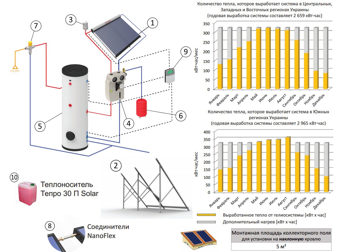 * — Стоимость дополнительных материалов для монтажа гелиосистемы (трубы, краны, муфты, обратные клапаны, изоляция и т.п.)составляет около 20-30% от стоимости оборудования.