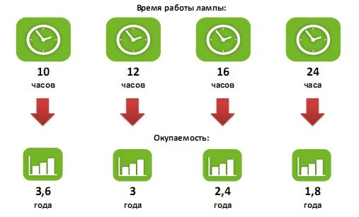 Но конечно, самую важную роль в расчете окупаемости светодиодной лампы играет «время работы лампы в сутки» и «стоимость электроэнергии».